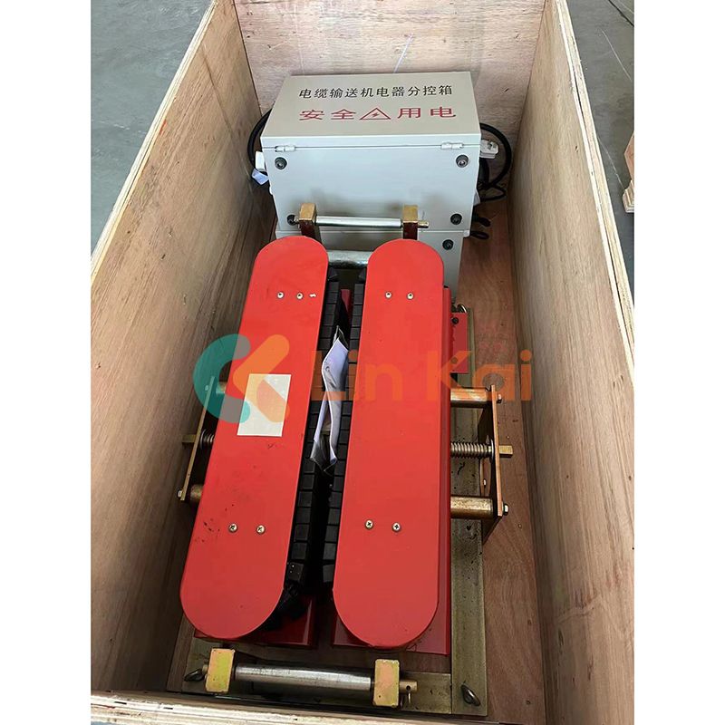 Didmeninė konvejerio kabelio traukimo mašina taikoma 380 V kintamosios srovės įtampa, elektra varoma dviem ašimis, varoma tolygiai ir mažai triukšminga. Vikšras pagamintas iš didelio tvirtumo neopreno, jo dangtelis gerai apsaugo izoliacinį kabelį ir gali būti naudojamas ilgą laiką.